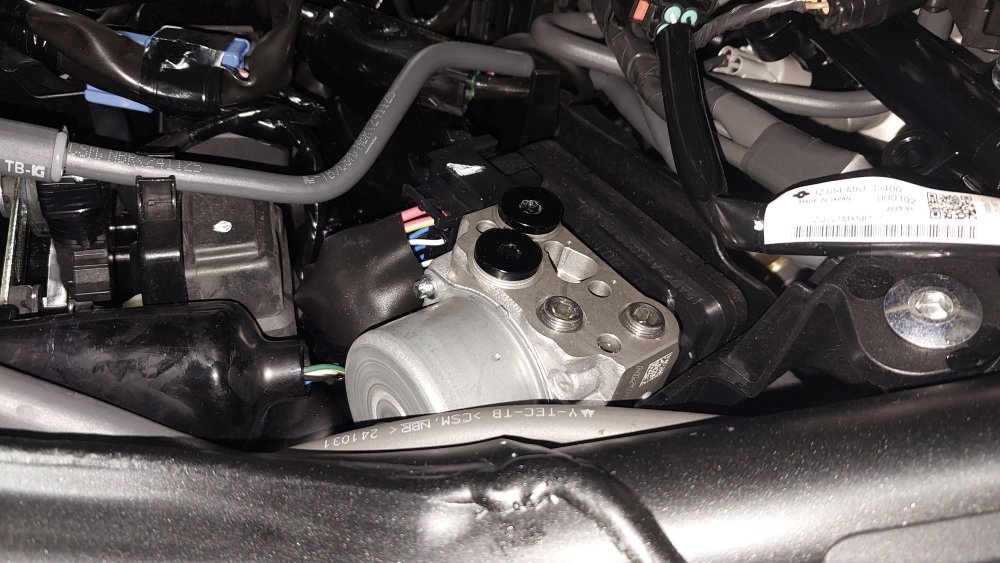 I will say it outright: The ABS on this bike is shit... Decent for street use, but impossible to live with on the track period. In fact all the electronics on this bike are fairly primitive, but the intrusive nature of the ABS is just something that in my opinion becomes downright dangerous on the race track. For the sake of clarification I am not against Antilock Braking Systems in general, but as a Professional Test Rider I have NEVER failed to outbrake any production based ABS on any motorcycle we have ever tested in both wet and dry conditions. I can always beat the computer and stop in a shorter amount of time without the aid of ABS than I can when the ABS is active. Granted not everyone has this same skill set, but on the track the Hornet ABS had me shooting right past the braking markers and going into turns way too hot so it had to go... At this point in time there is no way to completely remove the ABS module from the bike without causing a MIL Fault so we disconnect and plug the ABS Block, but leave the computer plugged and fuses intact. I had Spiegler make me some custom Brake Lines and routed them directly from the Master Cylinders to the Calipers completley bypassing the ABS Block. Also took the liberty of slightly relocating the rear reservoir while I was at it...