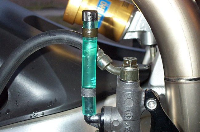 bikes, but two things detract from it: 1. The green tubing sweats brake fluid 2. After time the green tubing gets brittle & hard and no longer wants to stay formed to the nipple on the master cylinder and easily slips off during normal riding conditions on the track